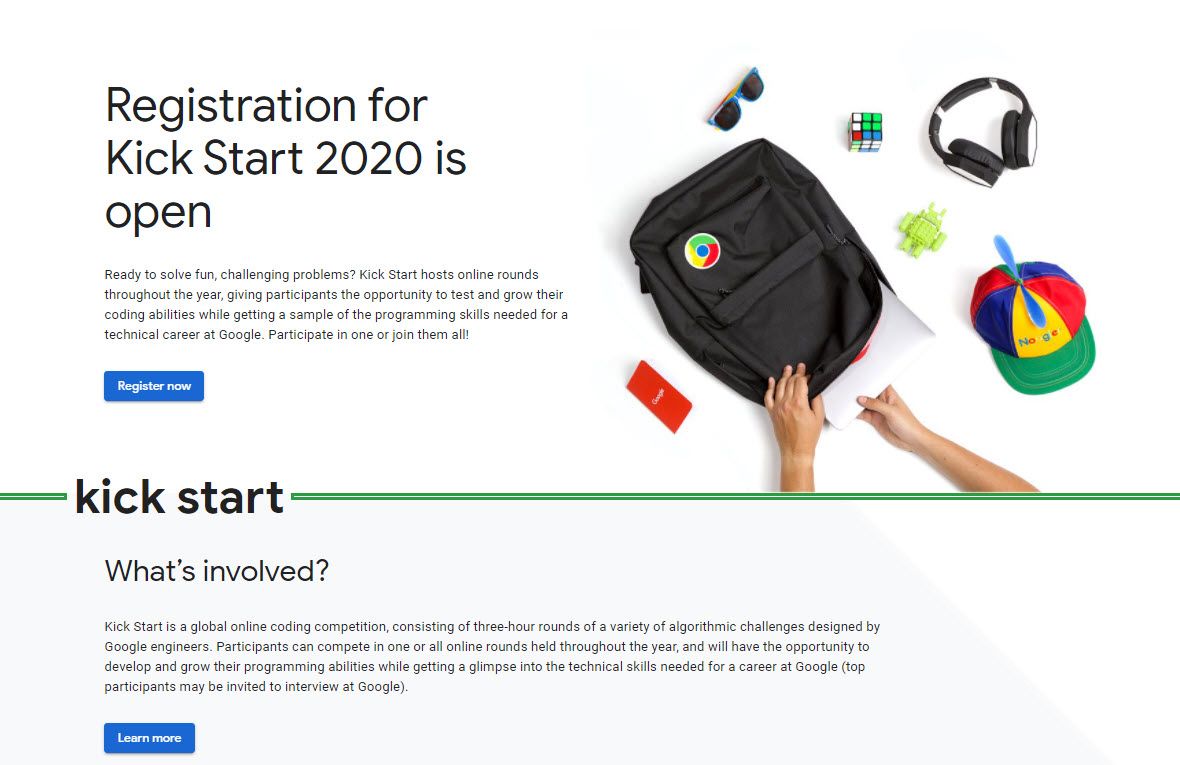 Kickstart potrebbe essere uno dei modi migliori per essere assunto in Google senza una laurea formale a tuo nome. Puoi partecipare come concorrente solista e testare le tue abilità algoritmiche contro i migliori al mondo.