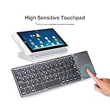 Questa è un’altra tastiera wireless pieghevole compatibile con qualsiasi sistema operativo, poiché si collega tramite Bluetooth . Ha una batteria da 210 mAh che promette di funzionare fino a 64 ore senza interruzioni. Ha un trackpad sul lato destro che ci aiuterà molto a navigare.