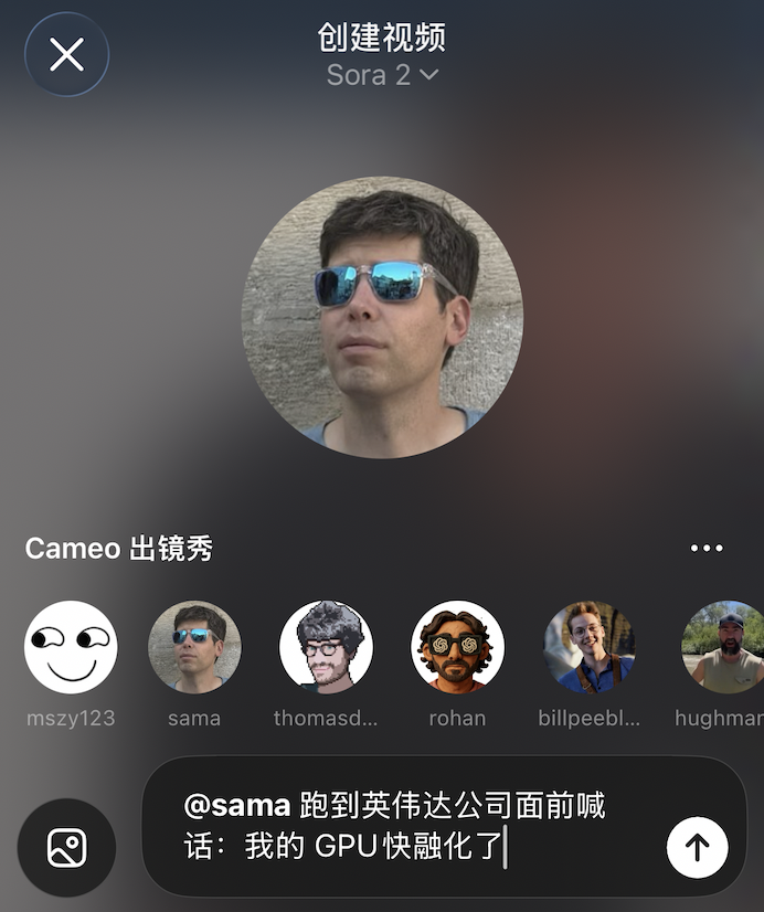 Realizzare un video con Sam Altman è incredibilmente semplice: basta selezionare l'account ufficiale @Sam Altman come "protagonista" e poi descrivere il contenuto video che si desidera generare.